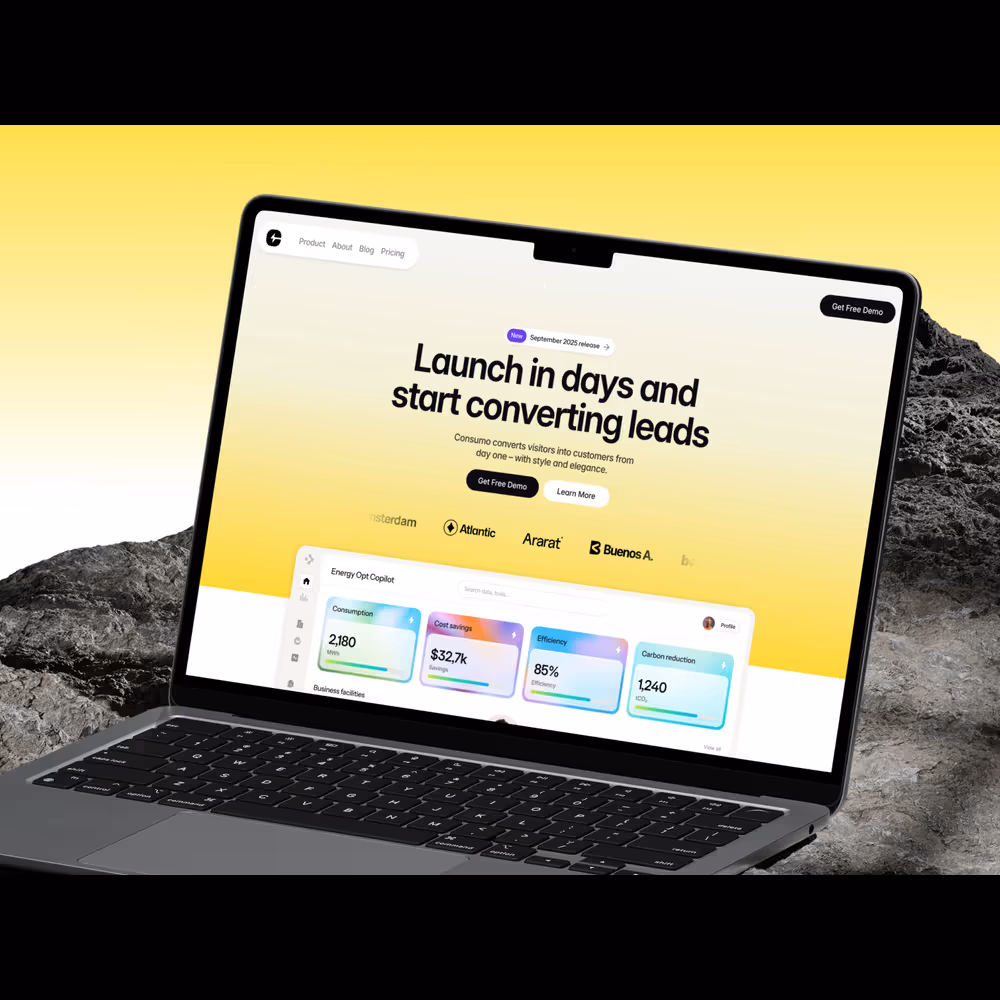 Preview https://consumo-template.framer.website/ Consumo is a premium B2B SaaS Framer Template designed for tech founders who need to launch fast with efficiency, style, and premium appeal that converts visitors into customers. It's built to maintain its professional impact even after you customize it with your own branding and industry-specific content. Pages included Core business pages Homepage (Interactive feature showcase with dynamic cards)Product (Comprehensive platform breakdown)About (Team credibility and company story)Pricing (Three-tier structure with feature comparison) Content hub Blog Index (Professional article showcase)Blog Detail Page (Long-form content with rich formatting) Conversion pages Get a Demo (Lead capture & conversion focused) Essential pages Terms of Service404 Page Special Deal:Subscribe to Framer PRO (Annual license) and get 3 free months (15 instead of 12). Use code"partner25proyearly" when upgrading your Framer Account. Questions? For pre-sale questions or general support send an email to [email protected] Refund Policy: Our products are digital downloads, so we don't offer refunds after purchase. We encourage you to review the product details thoroughly and contact us with any questions before buying. We're here to help you make an informed decision.